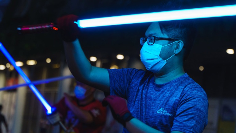 According to Jahaan, people have started lightsaber duelling for the fun of it before deciding to stay on for its fitness benefits. “It is absolutely a good cardio workout,” he says. “About half of our session is cardio-based. However, you don’t need to have good cardio to start. Our members are of all sizes, races, ages and fitness levels – and they’re able to get a good workout still. Over time, you will likely build up your cardio and hand-eye coordination.”