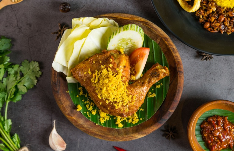 When the craving for fried chicken hits, order up some ayam penyet to eat with your hands in the comfort of home. The classic Indonesian Smashed Fried Chicken ($7.60) comes with tofu, tempeh, addictive crispy bits and spicy chilli that packs a punch. Or opt for the Grilled Chicken ($6.90) — grilled tender chicken served with tofu, tempeh and its signature chilli in black sauce.