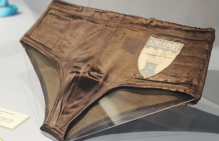 In a display nearby, I spot an unusually-shaped exhibit, which turns out to be a pair of swim trunks belonging to water polo legend Tan Hwee Hock. This particular pair was worn during Singapore’s gold medal victory match at the 2nd Asian Games in Manila in 1954. (If you’ve ever wondered what 67-year-old swim trunks look like, here’s your answer.) Tan passed away recently aged 90 on Jan 26, 2021, and I get a bit sentimental thinking about his glory days.