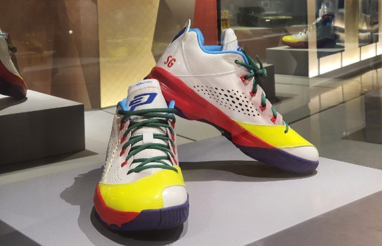 The next apparel display I find propels us to 2014: a pair of custom-made Air Jordan CP3.VIIs bearing the Singapore Sports Hub logo colours and the words “Sports Museum” on the inner tongue. Limited edition? Sneakerheads will surely like this.