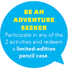 1. Pick up a school holiday fun guide from any Information Counters located within Singapore Sports Hub. Venues include Singapore Indoor Stadium, Visitors Centre, OCBC Arena, National Stadium (Gate 6), Water Sports Centre, Splash-N-Surf, Kallang Wave Mall and Climb Central.