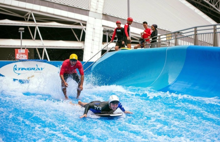 What: Stingray ®  is a half-pipe surfing facility within Splash-N-Surf. There, you can have a go at bodyboarding or skimboarding on an artificial wave pool.