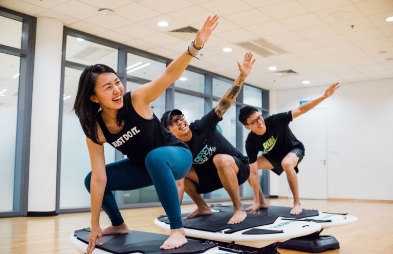 “Our tagline is ‘Everything is harder on the board’,” says Yu Shuyi, a SURFSET Fitness instructor. “Your body needs to constantly fire stabiliser muscles to keep your movements in control.”