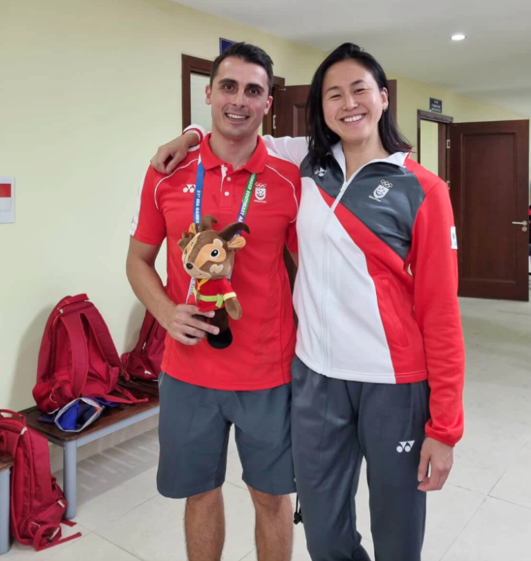 Coach Alexander Mordvincev with Quah Ting Wen at the 31st SEA Games 2021.