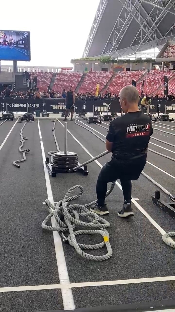 Jumahat, whose passion for sport is rooted in triathlon, has cultivated a strong sporting culture within his family. Located at the heart of Tanjong Pagar, Jumahat’s children Norliyana and Hafiz Jumahat run MethodX Gym—a HYROX affiliated gym. It is there where Jumahat trains everyday and strives to improve, no matter the pain he has to endure.
