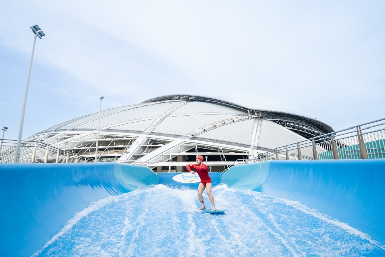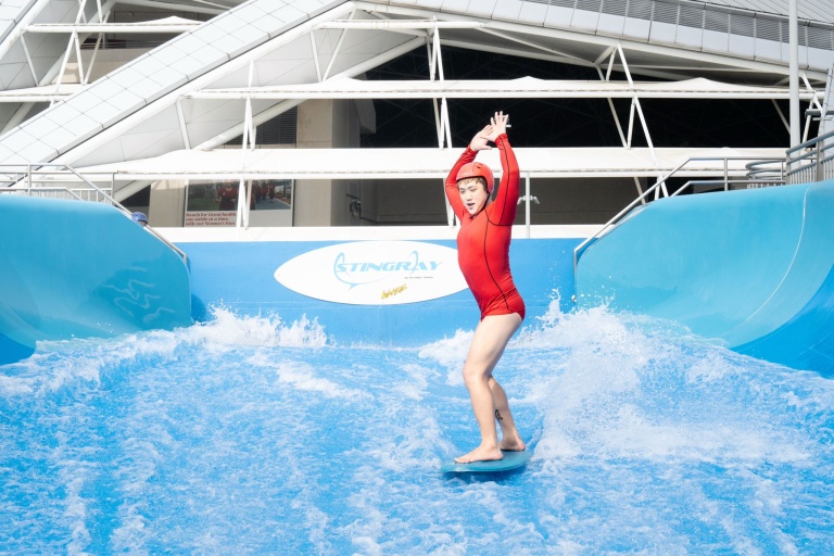 Check out Red’s latest dance video on the Stingray surf simulator at the Sports Hub’s Splash-N-Surf Water Park here.