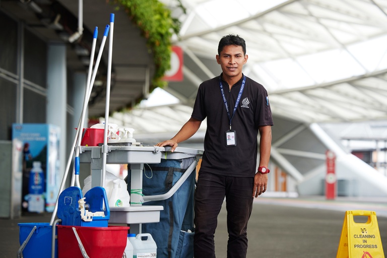 Keeping a place clean and tidy is something Faizul feels passionately about. As a Cleaning Supervisor at Singapore Sports Hub, he oversees a team of five cleaners to ensure the cleanliness of the National Stadium for the comfort of patrons. “It makes me happy to see the whole place spick and span, and to see our patrons enjoying this space we all truly call our own,” said the 30-year-old.