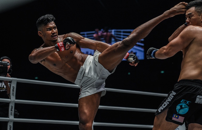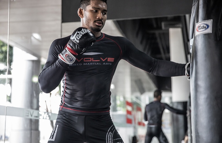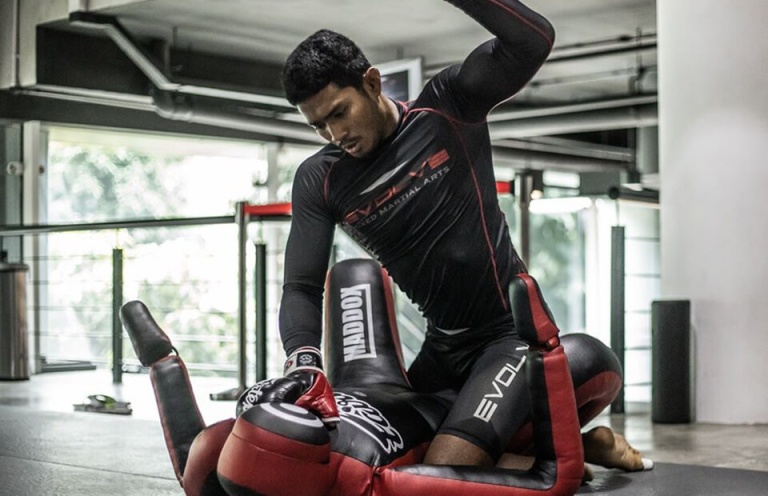 The home-grown fighter has some serious dedication to his craft. He trains six days a week, with double sessions on five of them, at Evolve MMA. Each session lasts around two hours and involves Muay Thai, Brazilian Jiu-Jitsu, boxing, grappling, and strength and conditioning drills. Even during National Service, he squeezed in training every chance he got to remain sharp.