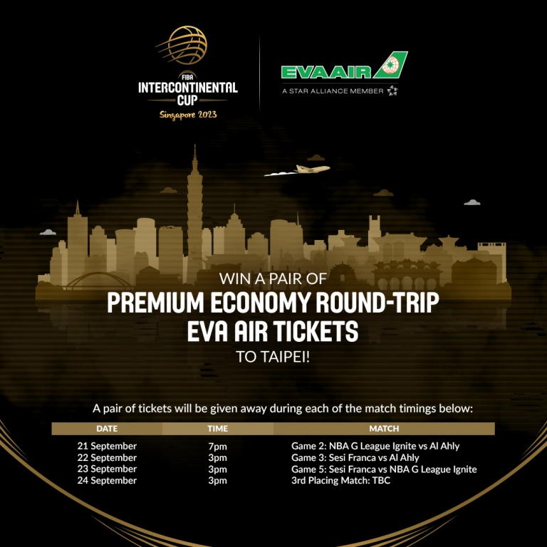 Fans can try their luck at nabbing an All-Access Fan Experience or win air tickets by EVA Air, the official airline partner for FIBA Intercontinental Cup 2023. For further details, please visit the Singapore Sports Hub Facebook and Instagram social media platforms for updates.