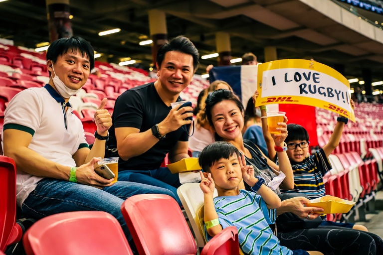 Rugby is a team sport that families can enjoy watching together.(Masks were removed for photo-taking purpose.) Photo by Singapore Sports Hub.