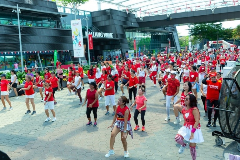 Start the morning at the Majulah Fiesta Fitness Party, with outdoor group dance classes like KPopX, Supafresh DanceFit, and BollyBeats to get you moving in your red and white.